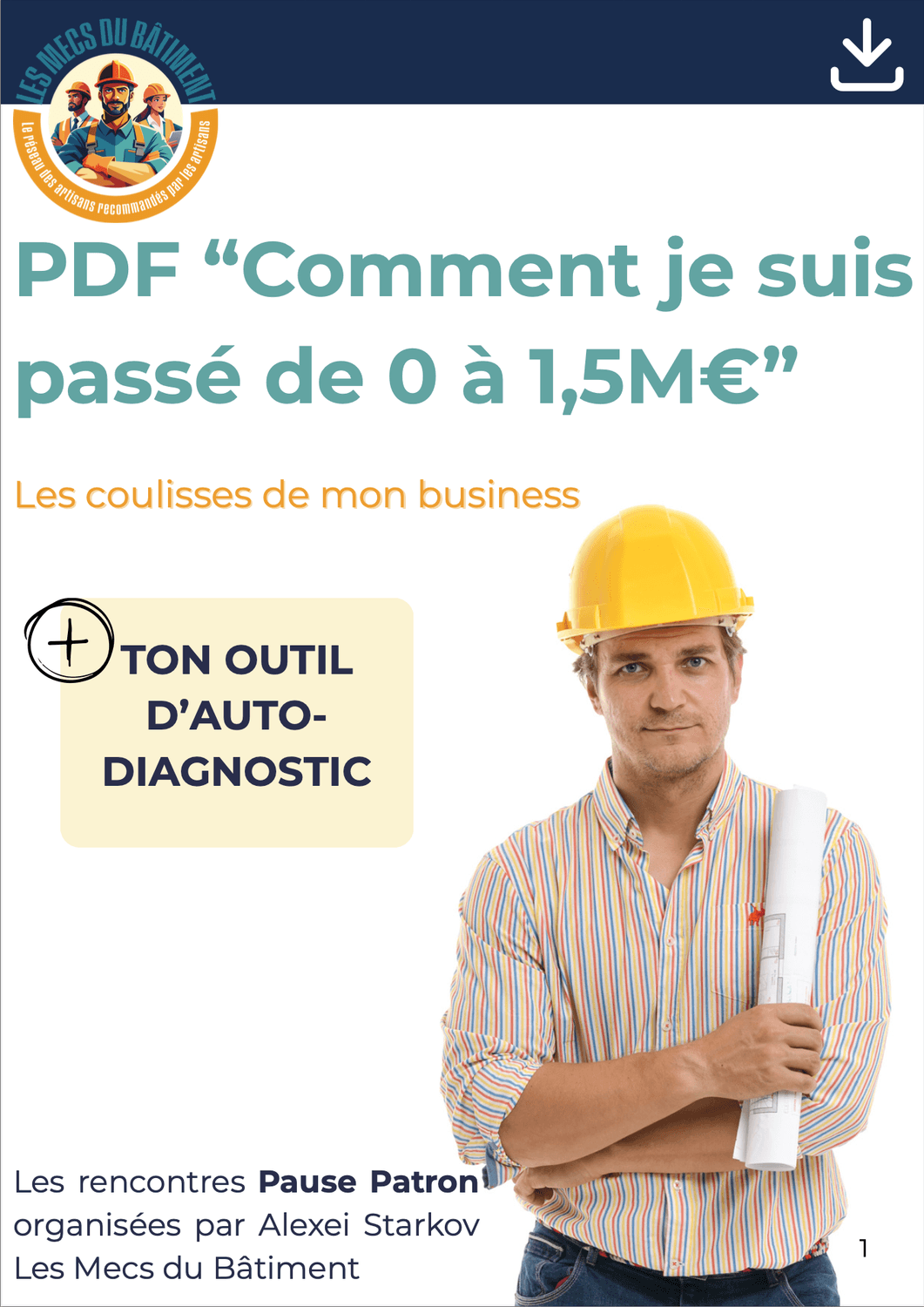 Salut, moi c’est Alexei Starkov, artisan, créateur du réseau Les Mecs du Bâtiment, et avant tout, un mec qui sait ce que c’est de galérer dans le métier.